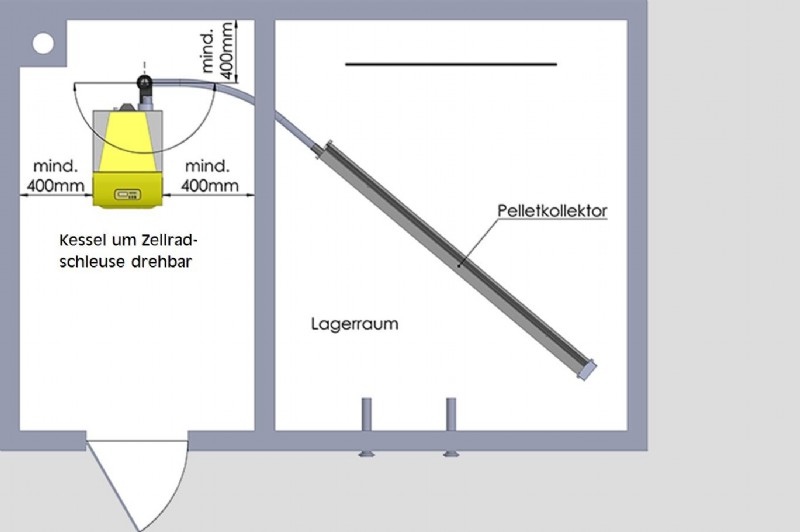Pelletkollektor schräg im Lagerraum